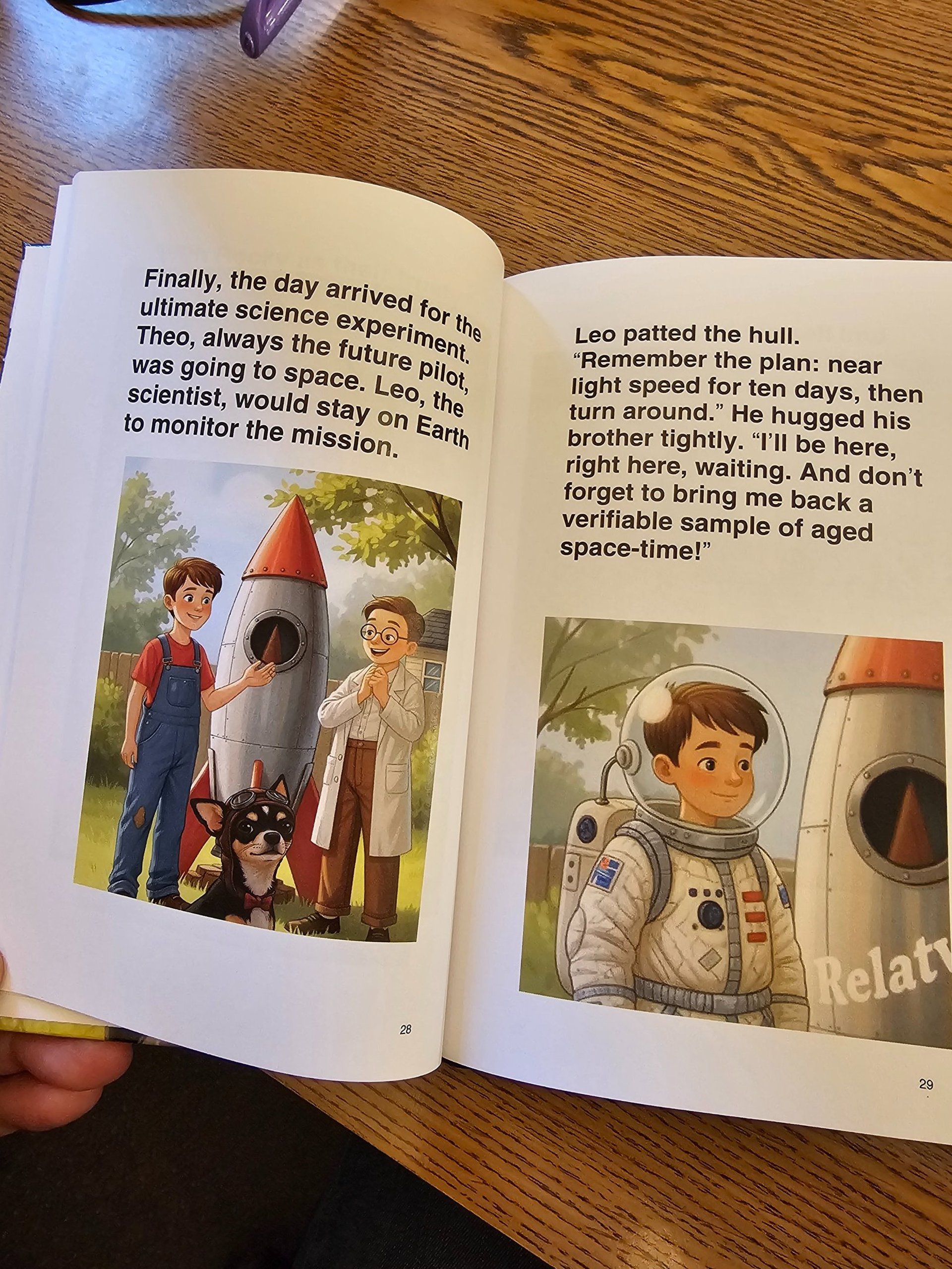 In "Rocky's Time-Tails: The Twins Paradox with Leo and Theo," readers embark on a whimsical journey through the intriguing world of time dilation, narrated by Rocky, an endearing Chihuahua with a knack for storytelling. As Rocky guides young readers through the complexities of the twins paradox, he presents engaging experiments that make learning about physics fun and accessible. The book also features a delightful bonus story, "Rocky and the Invisible Hug," where Sir Isaac Newton himself explains the concept of gravity to Rocky, blending historical insights with playful imagination. This charming tale not only entertains but also inspires curiosity about science, making it a perfect read for budding young minds.