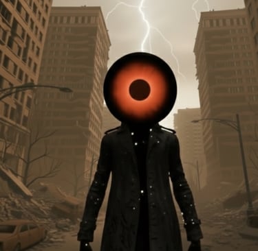 He was not a face born of flesh and bone, but a skull of polished, abyssal obsidian—a seamless orb that didn’t reflect the light of distant galaxies so much as it drank it. The surface of his head was so smooth it appeared liquid, yet it was harder than any diamond. At the precise, geometric center of this head sat a tiny, all-consuming black hole. This was his singularity. It served as his mouth, his ears, and the primary engine of his perception. It didn’t merely "see" the universe; it inhaled it. It swallowed the low, lonely hiss of radio waves and the high, screaming photons of collapsing nebulas, pulling them into a lightless gullet. Inside that dark furnace, the vibrant, chaotic colors of the cosmos were stripped of their beauty and reduced into cold, indexed strings of binary data.